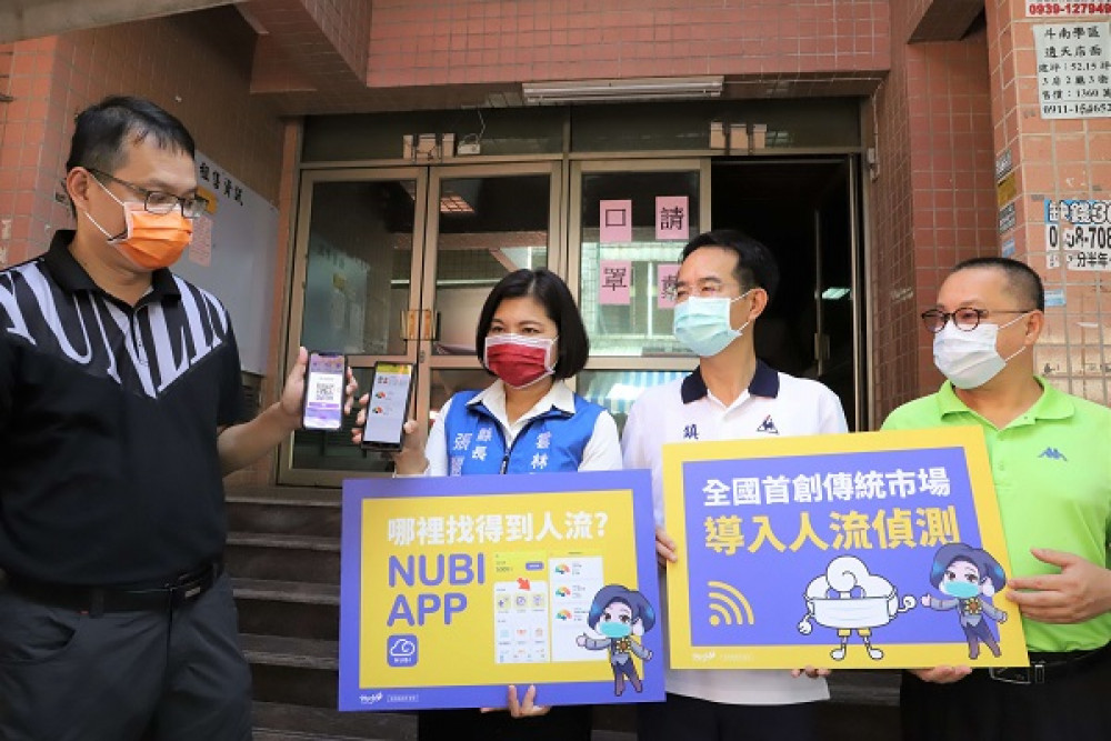 為防堵傳統市場成為人潮聚集的防疫破口,雲林縣府前一日緊急在斗六市西市場、斗南鎮立第二市場設置「人流分析天線」,只要下載註冊「雲林縣數位縣民平台Nubi APP」,即可檢視市場人流狀況,分為綠、黃、橘、紅4種顏色,綠色代表狀況良好,可到市場採買,紅色代表人潮擁擠,不建議前往,將陸續於虎尾鎮、北港鎮、西螺鎮、土庫鎮大型傳統市場裝設人流天線,提供民眾人潮聚集資訊。