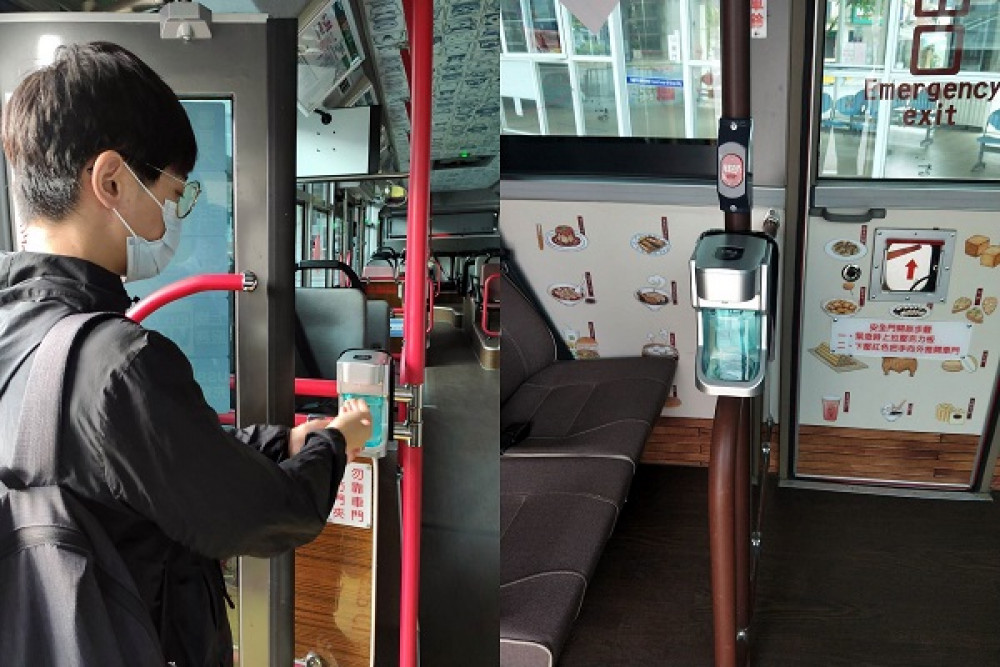 交通處指出,市區公車3條路線電動公車全面加裝「酒精自動噴灑器」,每台均配置1台噴灑器在上車門邊,大型電巴裝置在前車門入口處,中型電巴安裝在中門入口處,方便民眾進行手部消毒;電動公車原本裝設的空氣清淨殺菌設備,能有效保護民眾乘車安全。