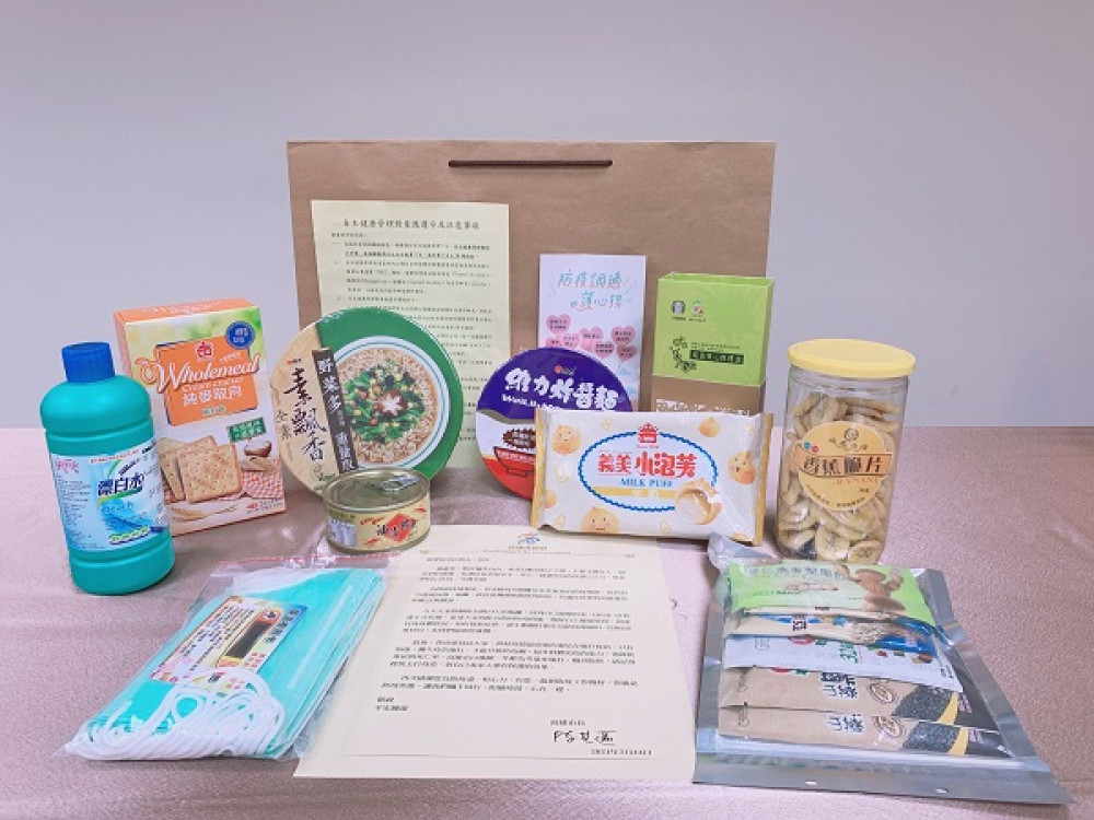 市府為每位配合隔離的住戶準備的關懷感謝包中,除額溫卡、口罩、漂白水等防疫小物,方便民眾後續進行自主健康管理,另外還有高雄特色農漁產品與零食。行政暨國際處處長項賓和表示,關懷感謝包全數由市府同仁親手分裝發送,後續會將先前的防疫關懷包升級,讓所有配合防疫進行居家檢疫或隔離的民眾,都能感受到市府團隊的關心與感謝之意。
