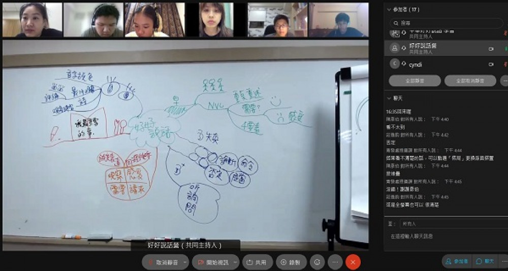 「好好說話營」邀請中華好好說話﹐學會擔任師資團隊,共同推廣馬歇爾.盧森堡發展的「非暴力溝通(Nonviolent Communication)」,課程中搭配大量Jamboard協作、線上遊戲等多元素材,讓學員在輕鬆又充實的實作歷程中,認識「觀察、感受、需要、請求」四大要素,期盼透過營隊為學員們種下「好好說話」種子。