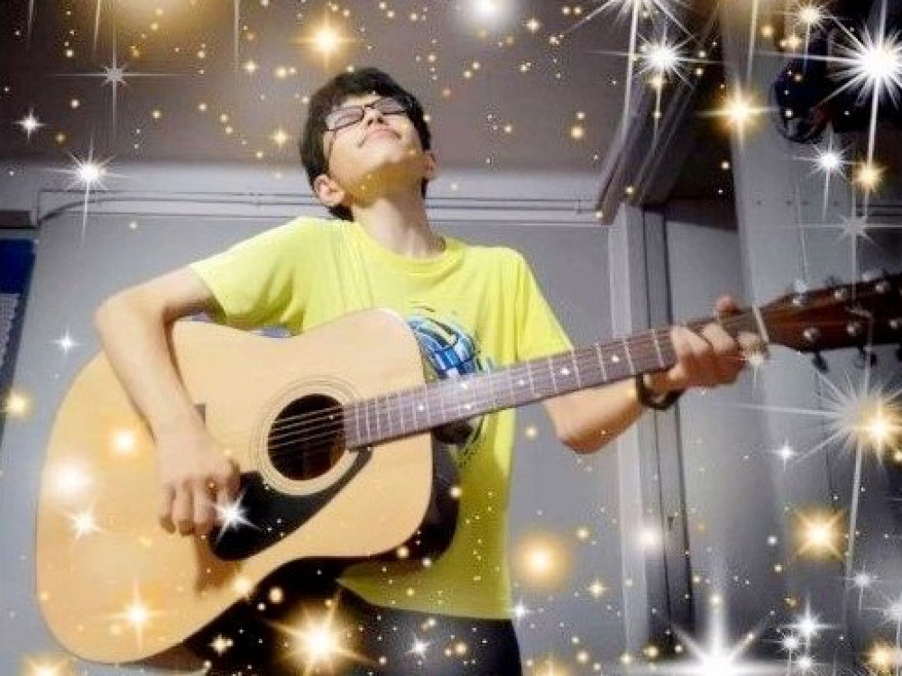 高三生黃同學用手語與大家分享,這次課程中最喜歡攝影課,學習到如何調整拍攝光線和角度,他希望未來能當一位專業攝影師,用影像展現出自己的想法。高二生黃同學以一張手抱吉他、滿臉陶醉表情的照片贏得全場的肯定,還有人在聊天室留言「Rocker讚!」
