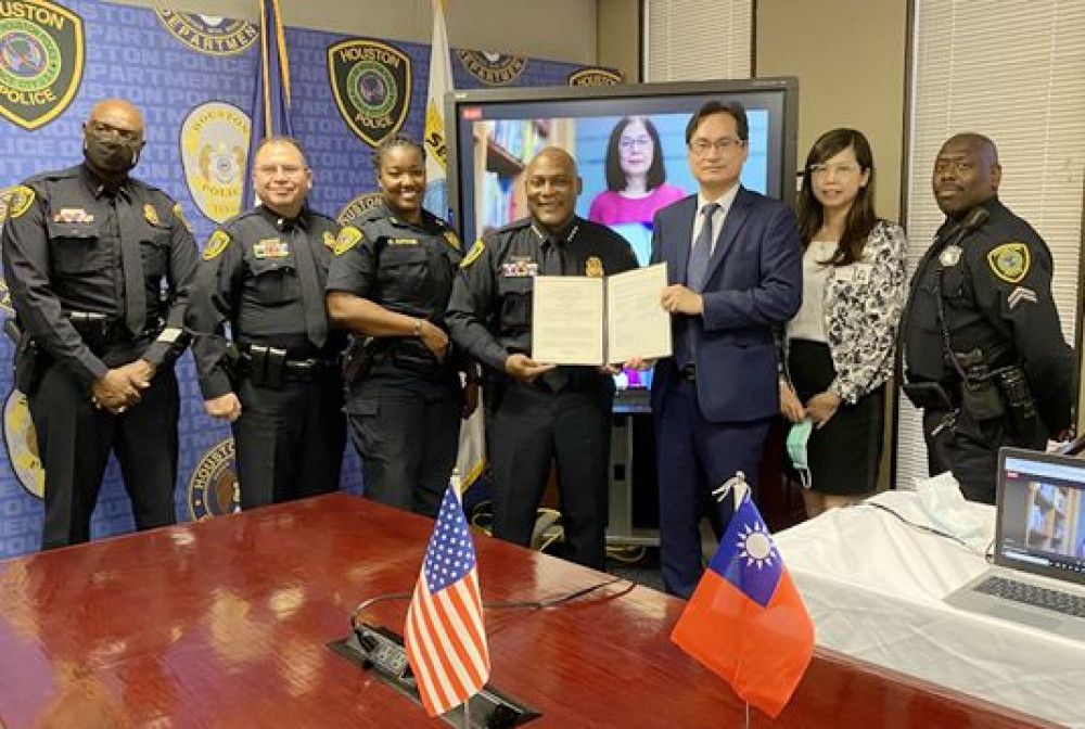 今年7月29日教育部透過視訊與休士頓警察局舉行線上簽約儀式,教育部國際及兩岸教育司司長李彥儀與休士頓警察局局長Troy Finner在駐休士頓台北經濟文化辦事處處長羅復文的見證下,完成續簽3年期合約。