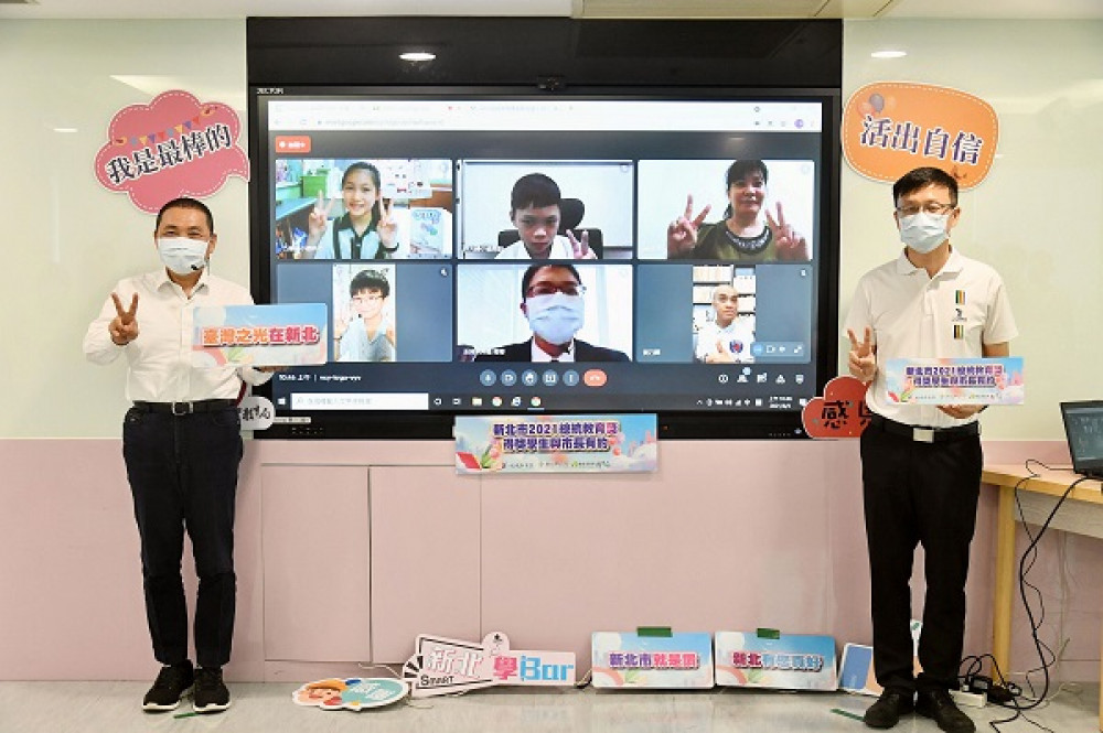 總統教育獎以不畏困境、奮鬥不懈的學習精神為選拔標準,2021年新北市共4名學生獲此殊榮,市長侯友宜3日(二)化身阿拉丁神燈,為孩子準備專屬禮物,透過雲端視訊嘉許得獎學生不畏艱難、勇於超越自我的精神。