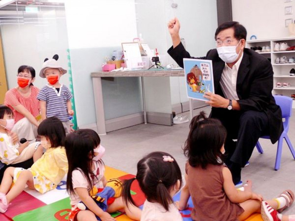 為歡迎幼兒們入讀教育部忠孝大樓職場互助教保服務中心,教育部部長潘文忠今日上午特別到該中心,與小朋友互動,表達歡迎之意,並致贈新生入園禮-兒童繪本,希望小朋友在該中心快樂學習。