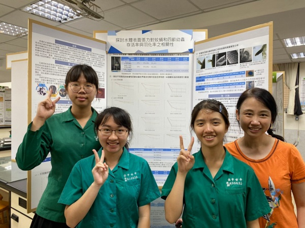 台中女中獲獎同學表示,起初對要找到自己有興趣的主題感到迷茫,某次發現蚊蟲防治在預防感染登革熱扮演重要角色,決定將主題訂為「利用水體表面張力構想出不致造成環境危害的滅蚊方式」。過程中遇到很多難題,從克服學習到溝通、獨立思考能力,感謝一路上老師、同學與家人給予支持與鼓勵。